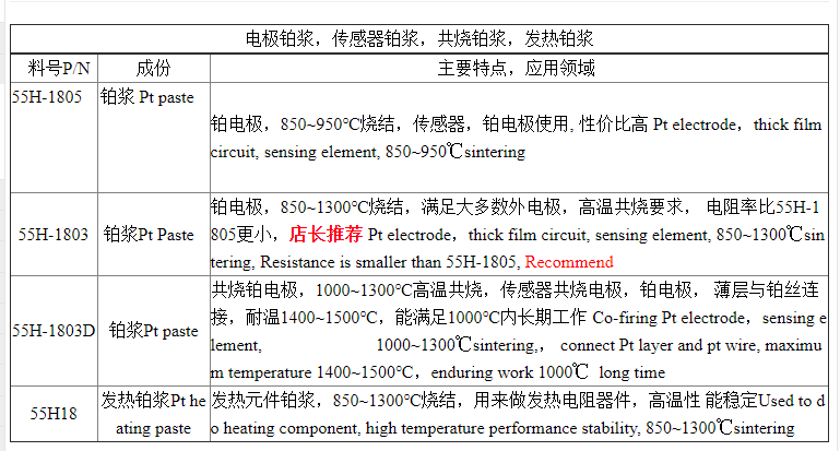 The platinum paste is a uniform paste-like material formed by mixing pure platinum particles, organic substances and binders. Platinum has extremely stable metallic properties and plays a crucial role in sensor electrodes and high-temperature co-fired components.